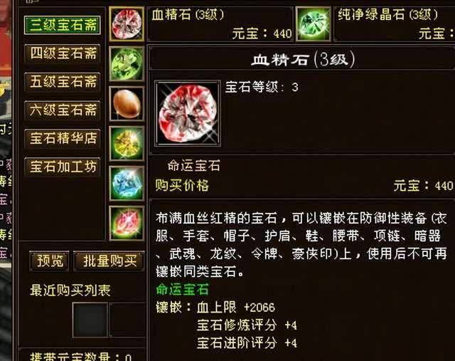 血精石,可谓是被策划遗忘的宝石,诸多玩法都将它摒弃在外。然而即便没得玩,其价格却比其他宝石还要高些,并且最为关键的是,血精石目前仅能在元宝商店购得,并无白嫖途径!