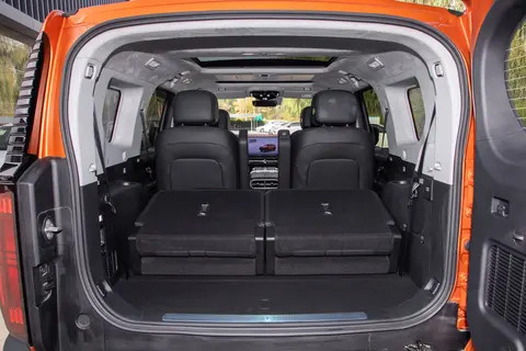 空间方面,G700的车身尺寸很大,轴距达到2870mm,5座版本的后排空间非常宽敞,腿部空间能轻松超过两拳,头部空间也很充裕;6座版本的第二排是独立座椅,支持前后滑动和靠背调节,第三排空间也不算局促,成年人短途乘坐完全没问题。后备箱空间也很大,常规状态下能放下几个行李箱和越野装备,后排座椅放倒后,还能扩展出更大的储物空间,甚至能当床用,长途穿越时可以休息。