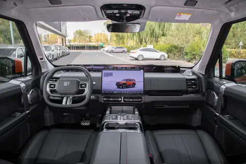 如果说涉水能力是G700的"防守强项",那动力性能就是它的"进攻利器"。G700搭载的鲲鹏超能混动CDM-O系统,综合功率达到665kW,综合扭矩1135N・m,最大马力904匹,百公里加速仅需4.6秒——这个数据放在硬派越野里,简直是"降维打击"。实测时,深踩油门的推背感非常强烈,完全不像一台长度超过5米、重量接近3吨的硬派越野,反而有点像性能跑车。中后段加速依然有劲,高速上超车时,只要轻踩油门,动力就能随叫随到,完全不用预留太多超车距离。